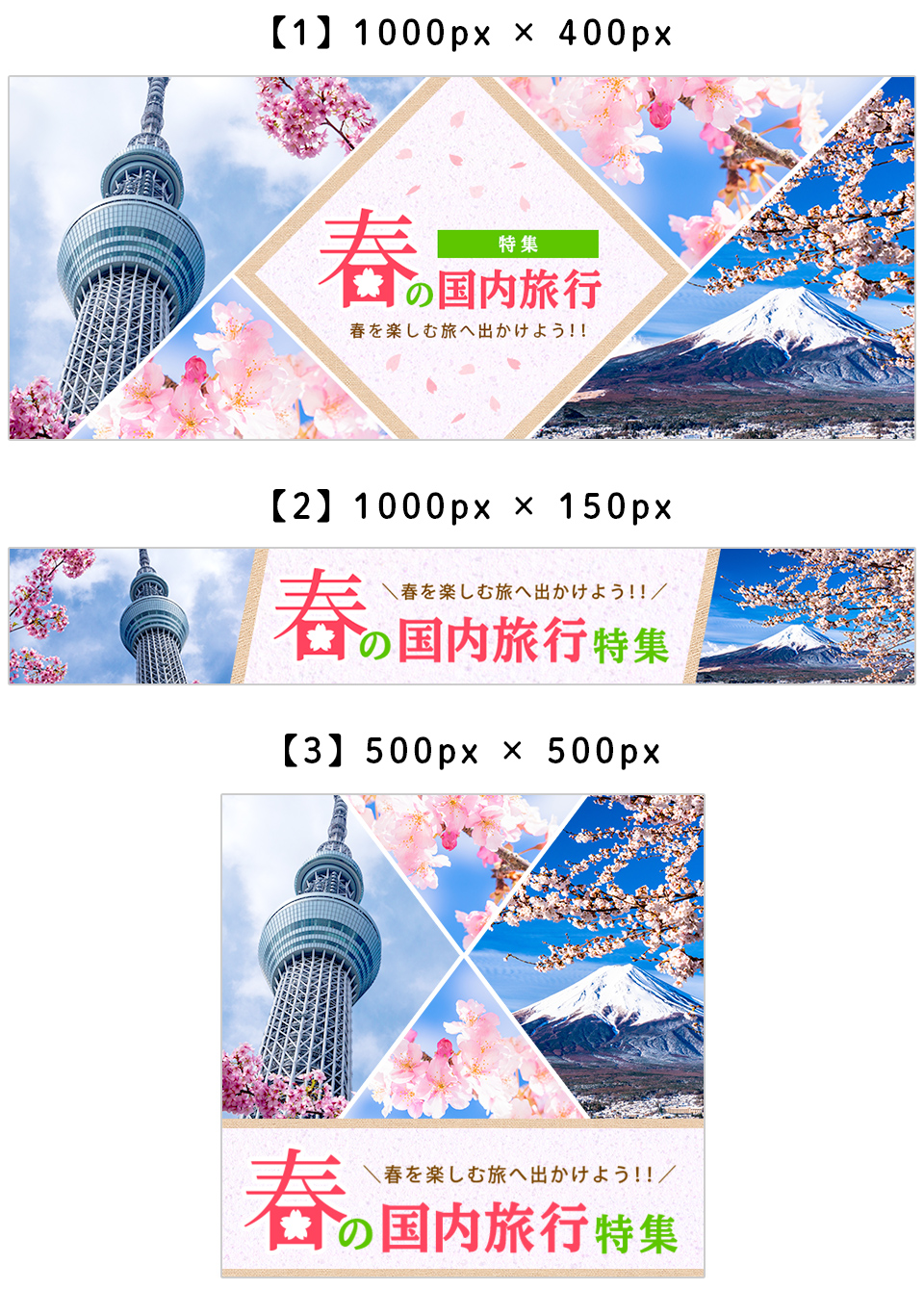 今回は様々な企業のバナーを想定して、“桜モチーフ”のバナーをいくつか作成し解説していきたいと思います。