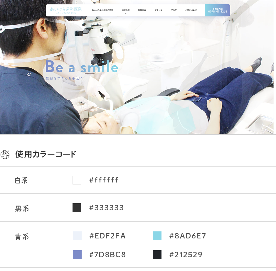 歯医者さんのホームページは青系のところが多いイメージですが、青系グラデーションを上手に活用されているこちらのホームページ。