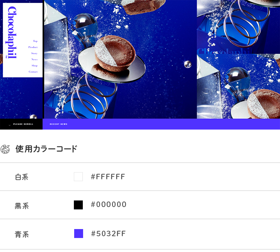 使用しているカラーの数は少なく、白・黒を除くとカラーは青一色のみ。