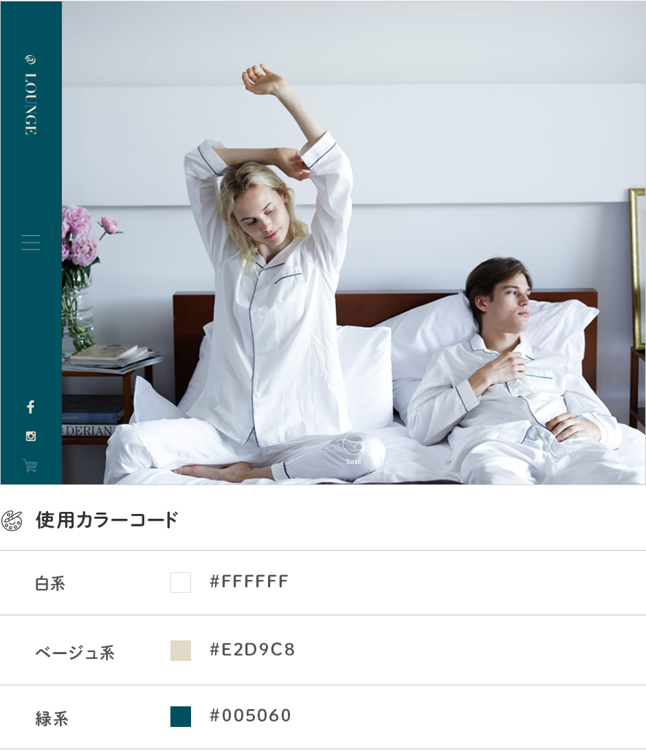 ラウンジウェアを取り扱うだけあって、リラックスかつ落ち着きのある配色です。夜空を連想できそうな色でもありますね。