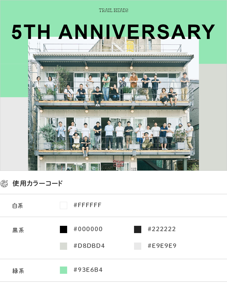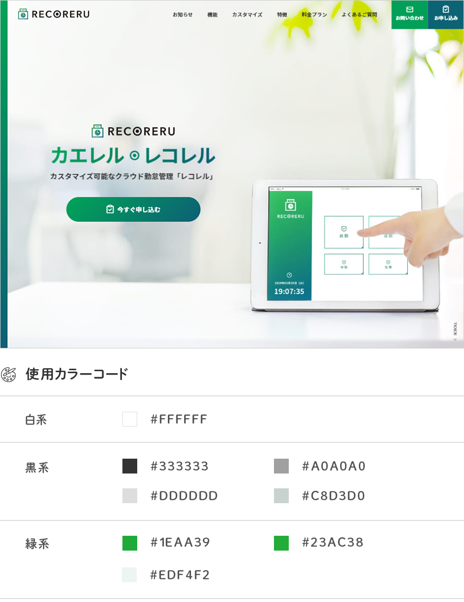 背景に使用しているグレーは「#E9E9E9」のほか、若干緑寄りの「#D8DBD4」を使用しているため、メインカラーの緑との馴染みも良くなっているんじゃないかと思います。