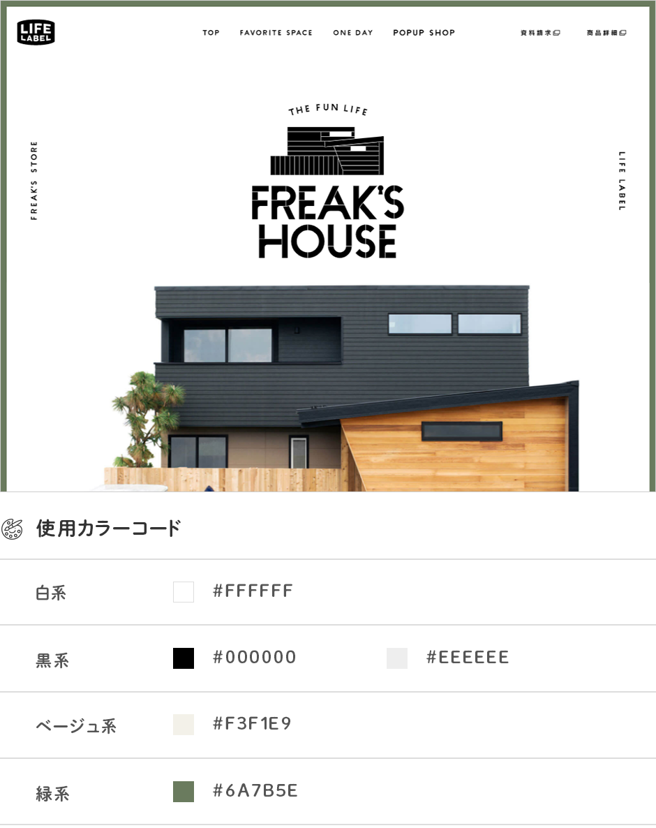 FREAK’S HOUSEのカラーであるカーキ色を使用しています。
