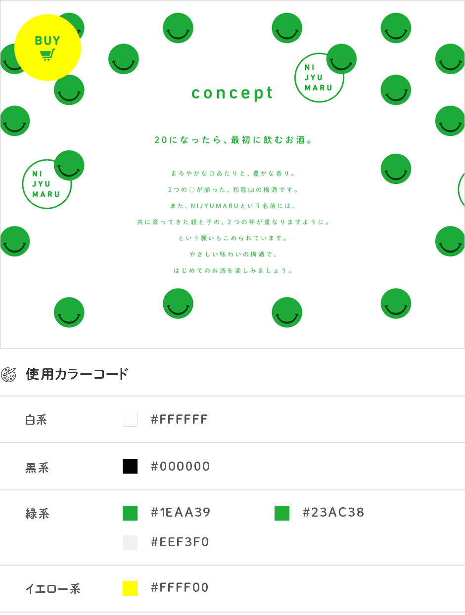 メインからーのビビッドなライムグリーンとちょっとゆるいイラスト&フォントが印象的。