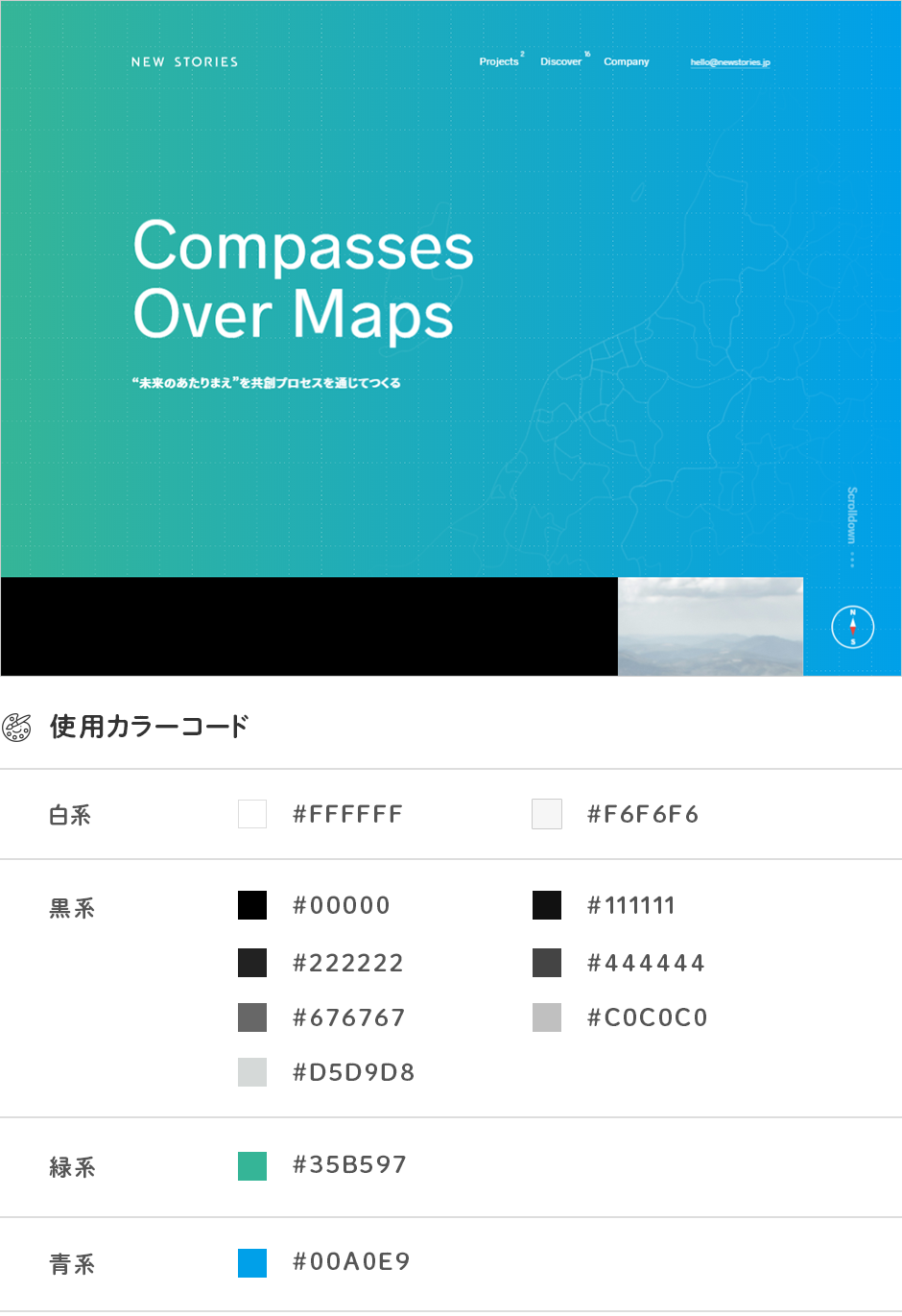 カラーコードを並べてみると、使用箇所ごとにちょっとずつ色味を変えて使用しているのが分かります。