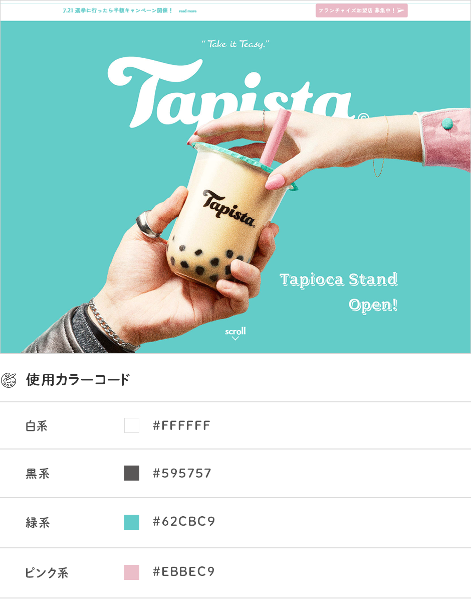 お店の色合いに合わせて、パステル調のミントグリーンとピンクを用いています。