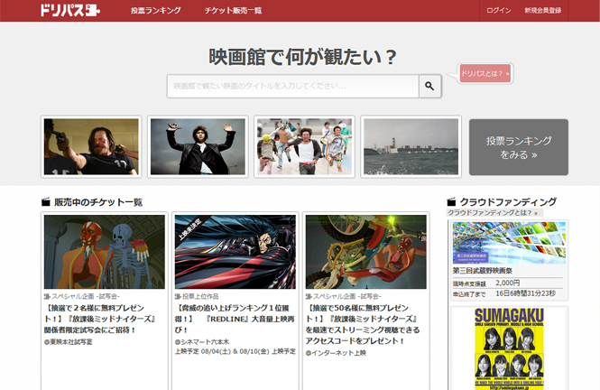 ドリパスは、他のクラウドファンディングとは違って、「何かを応援する」というスタンスではなく、「見たい映画に投票する」というもの。