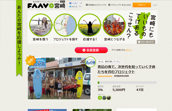 「他の県のプロジェクトを作る」といたり、URLがhttps://faavo.jp/miyazaki になっているところからすると全国制覇を狙っているのかも?