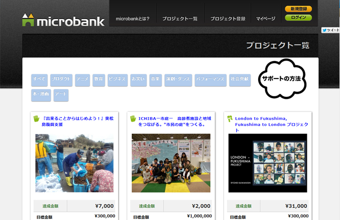 microbank(マイクロバンク)は、起業家や実業家を応援するクラウドファンディングです。