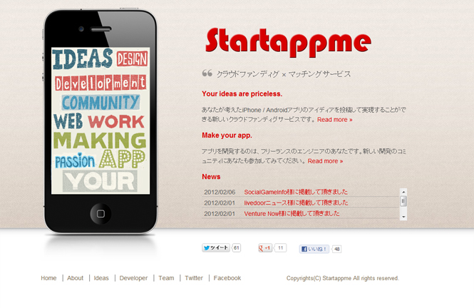 スマートフォンのアプリのアイデアを出して、アイデアが採用されたらフリーランスエンジニアが開発を行うらしいです。