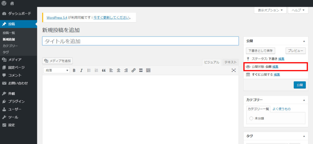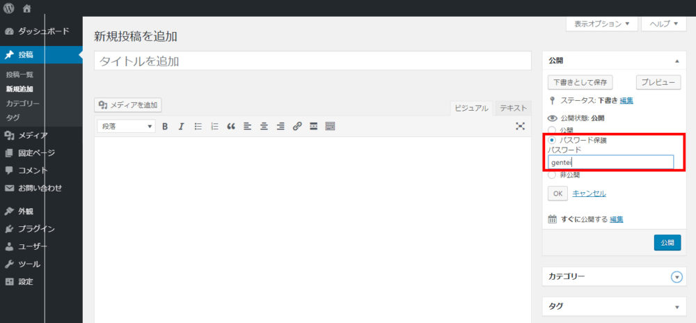 デフォルトの投稿機能でパスワードを設定する場合