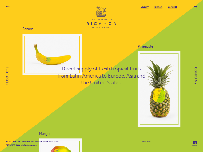 写真をHoverするとフルーツがくるくる動く仕様。Hover時の動きを見越したつくりになっていると思いました。