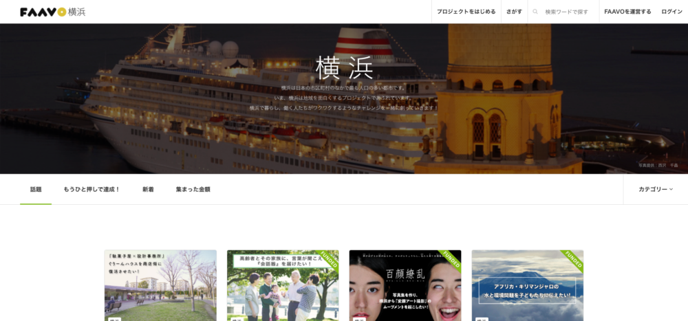 「FAAVO横浜」は、横浜エリアのクラウドファンディング情報を掲載している地域メディア。実際にここから寄付をすることも可能です。