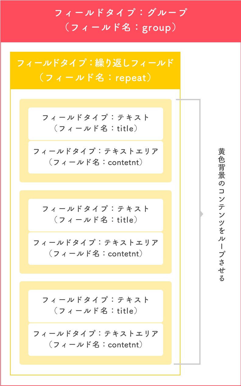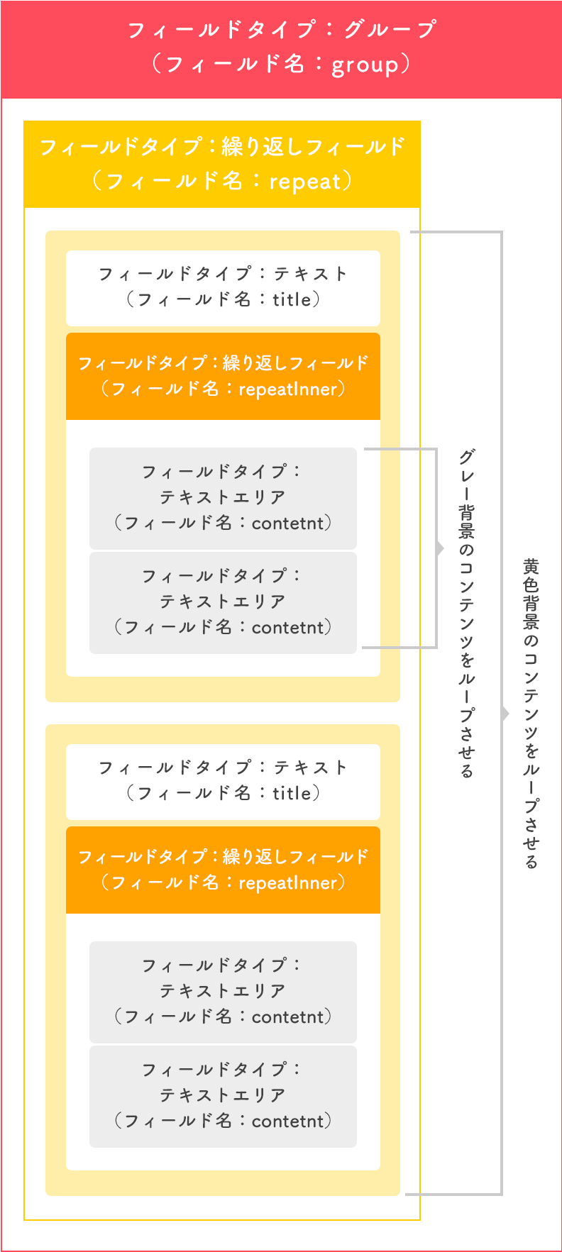 <!--*** ↑↑ さらに繰り返しフィールドを入れ子にしたい場合は同様に記述を繰り返す ↑↑ ***-->
