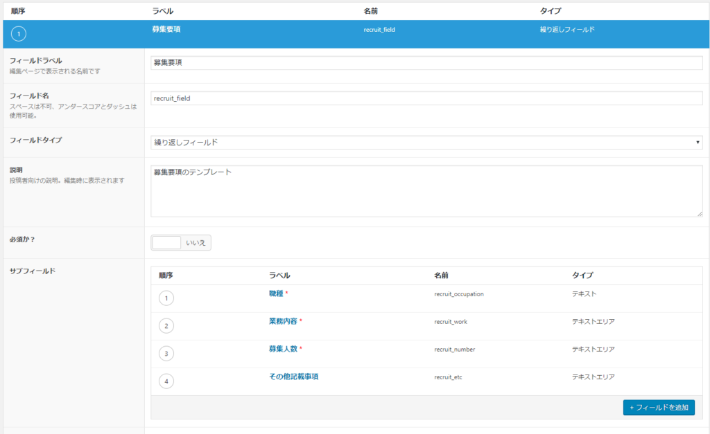 これで管理画面で繰り返しフィールドを使えるようになりました。
