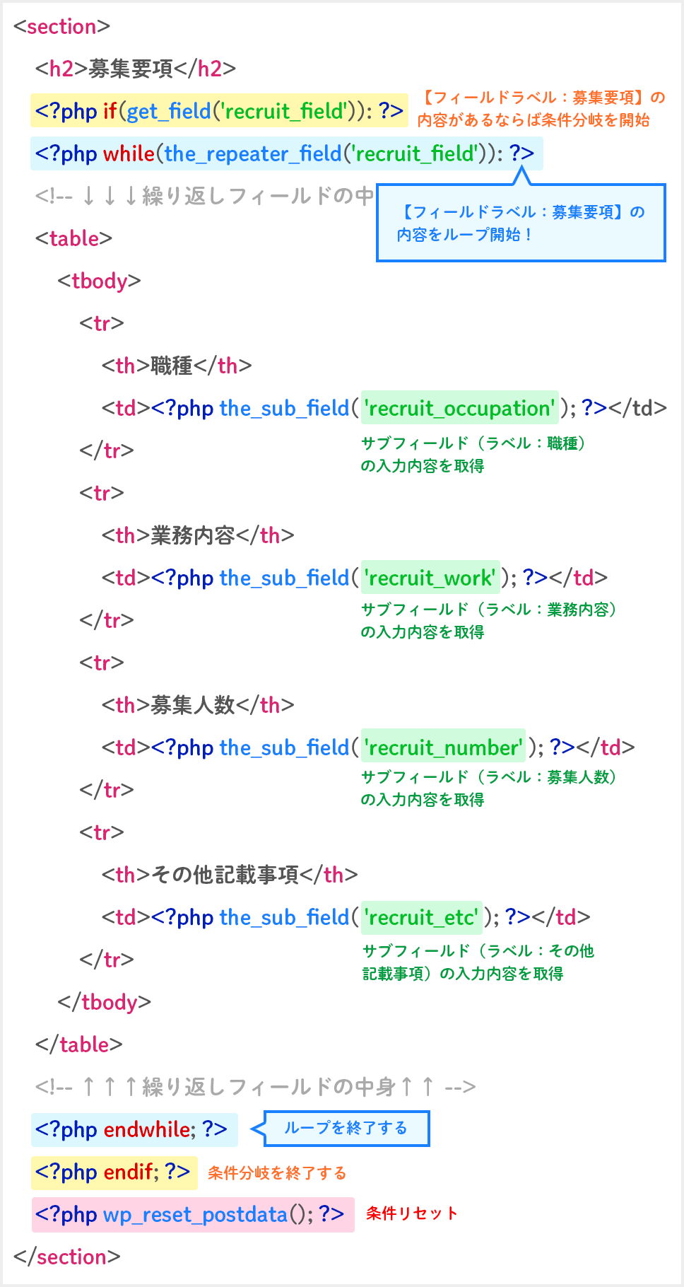 <?php end if;?>コードの解説をすると以下の通り。