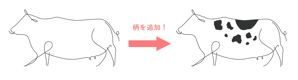 ただ、線のみのイラストだと「うし感」が薄いなあと感じたので、背中部分に柄を追加することにしました。